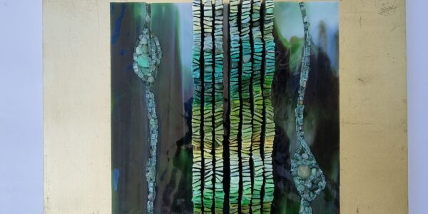 FÉNIX MARINA GATTO Pasta vítrea, smalti, venecitas 50 x 70 cm · 2022 no se imagina mil maneras para poder vivir en un Mundo Fantástico, con empatía, valores,respeto y más. Hoy mi mundo se tambalea y a través de…