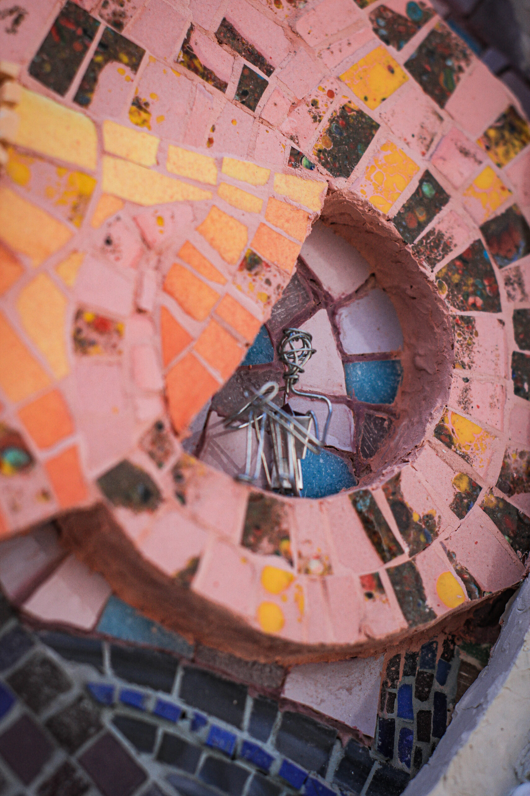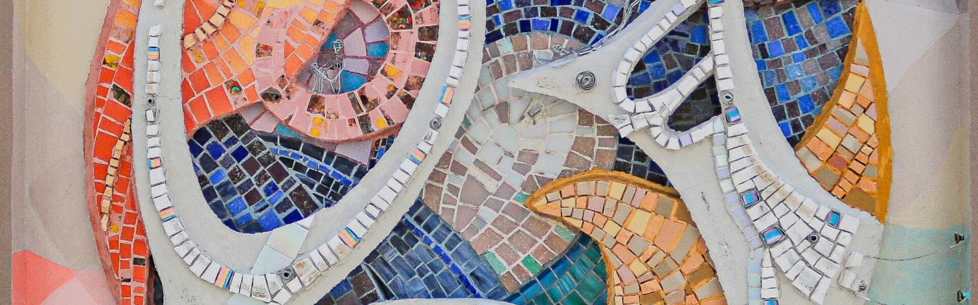 Azulejos, venecitas, vidrio spectrum, resina mineral, alambre, aluminio.