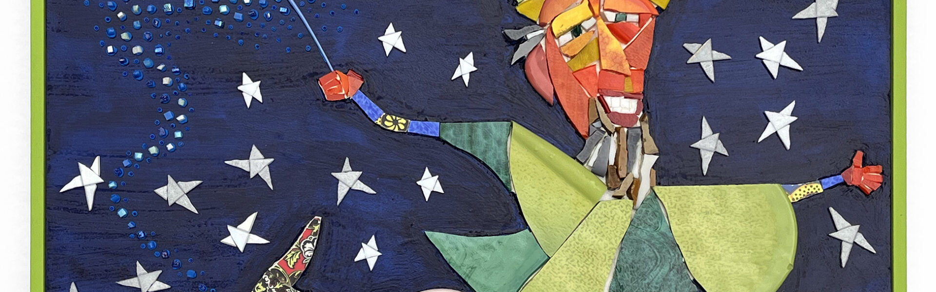 En la escena aparece como personaje principal Balthazar el mago, suspendido en el aire, se lo puede ver en una posición relajada mientras que su magia está fluyendo. De fondo, el cielo estrellado, y a lo lejos los castillos de Gondar. El personaje, las estrellas, los castillos y los destellos de la vara están realizados en mosaico, mientras que todo el cielo de fondo está pintado. Esto le da fuerza a la idea de volumen, y protagonismo al personaje. La leyenda cuenta que el mago Balthazar, protector del rey, es oriundo de la ciudad etíope de Gondar.![]()