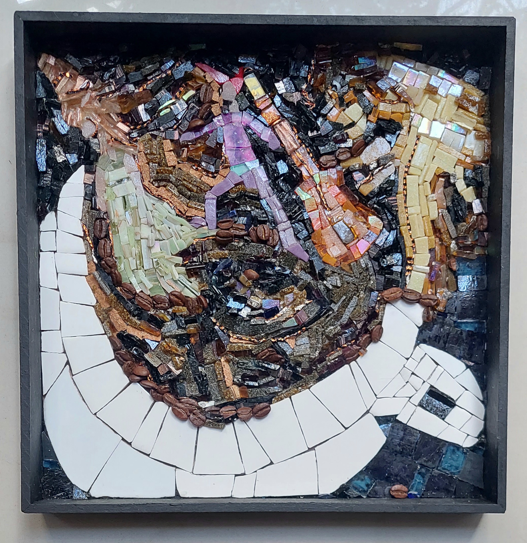 Venecitas, azulejos, teselas artesanales, corcho, papeles metálicos y granos de café.