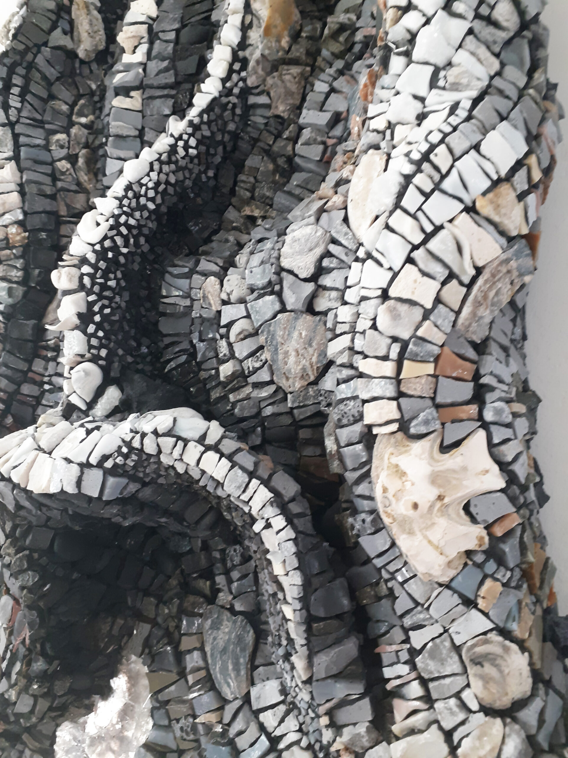 Soporte en relieve, piedras naturales, smalti, pasta vitrea, tortas simil piedra, mica.
