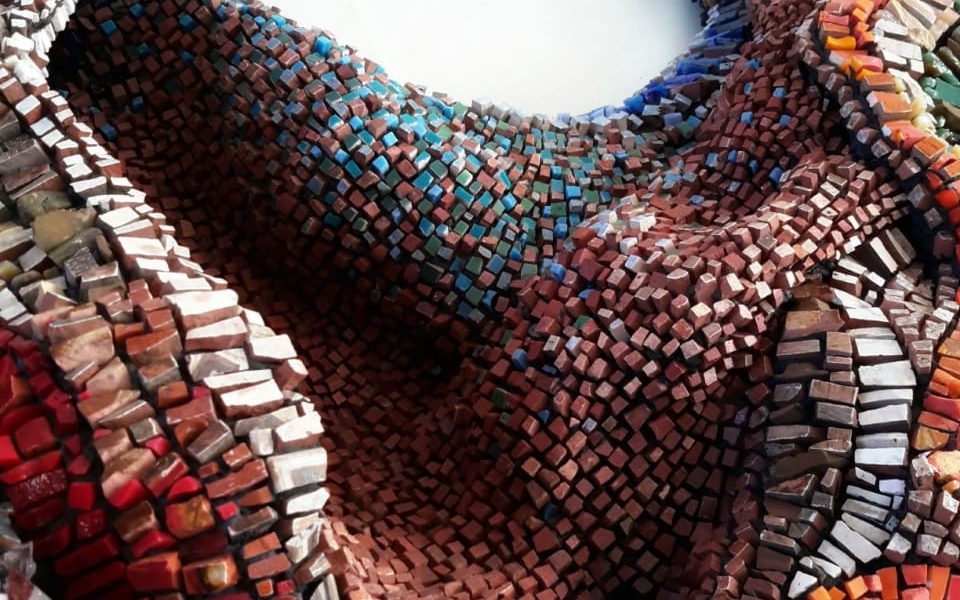 Materiales: cerámicos reutilizados, smalti, venecitas, azulejos, vajilla, cable, piedras.