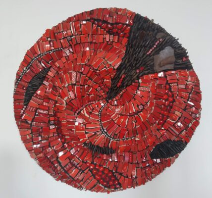 Piedras, smalti, venecitas, azulejos, fibras naturales de palmeras.
