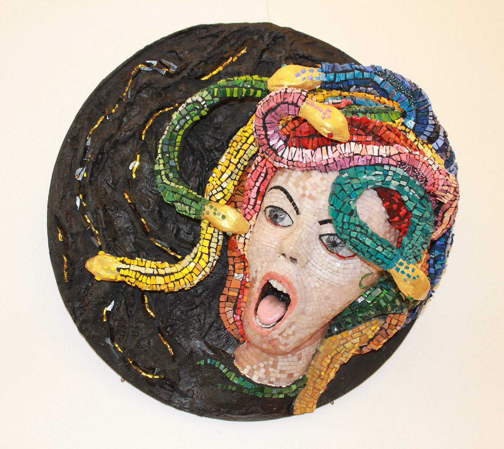 Los mitos nos ponen en presencia de mundos fantásticos, extraordinarios. Mundos cargados de sacralidad donde dioses, semidioses y mortales conviven entre si. Esta obra representa el mito de la Medusa. Sacerdotisa, bella mujer, víctima, villana monstruosa, deidad poderosa… ella es todo eso y mucho más. Su naturaleza mercuriana la convierte en una fuente inagotable de fascinación. En cierto sentido ella es vehículo de nuestras proyecciones colectivas tanto de miedo como de deseo; también es un símbolo de la ira y la sexualidad de la mujer generadas por las mismas fuerzas patriarcales que busca transformar.