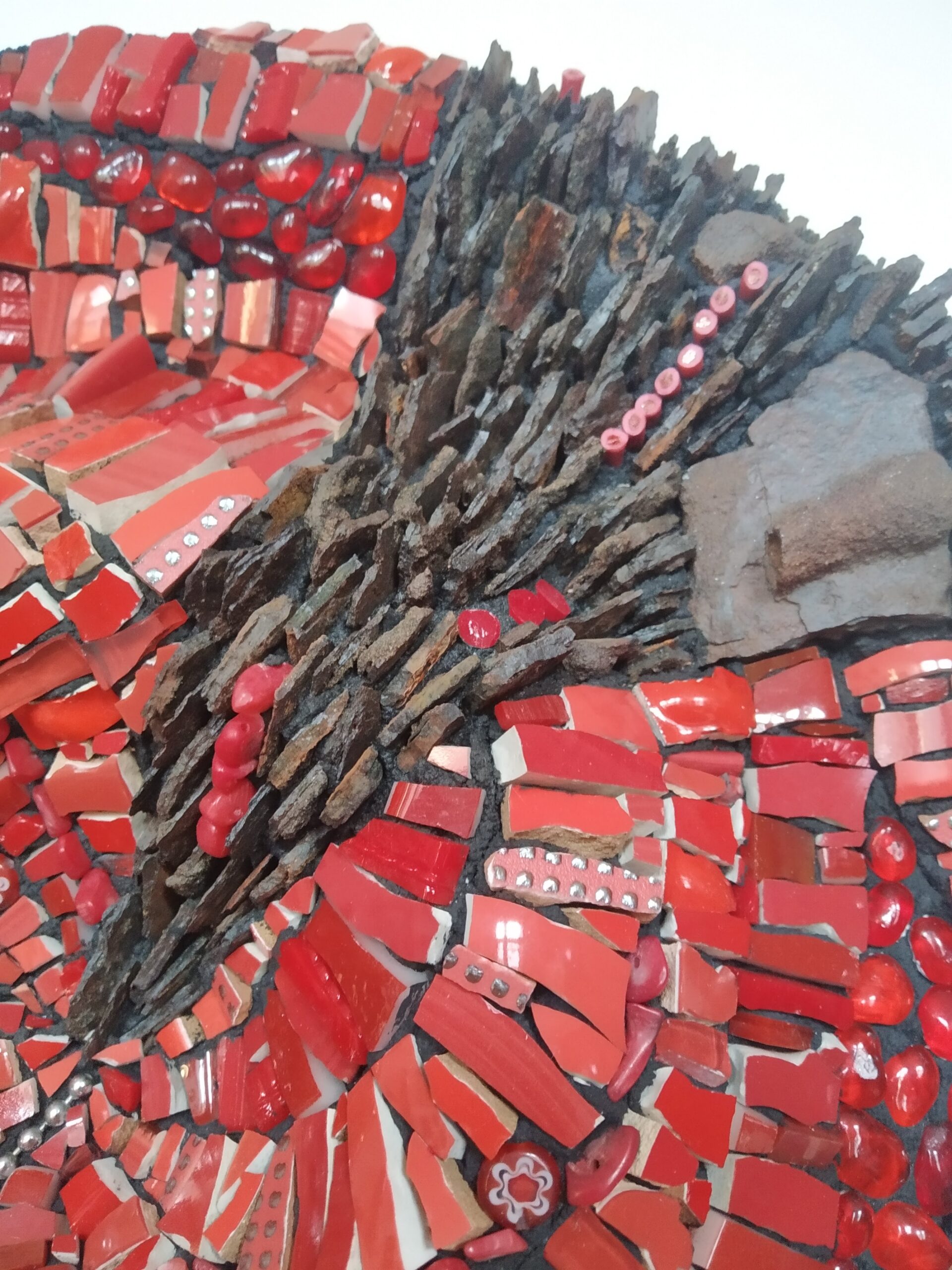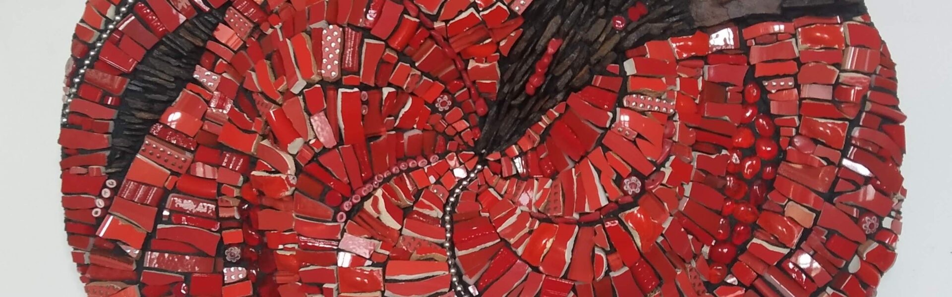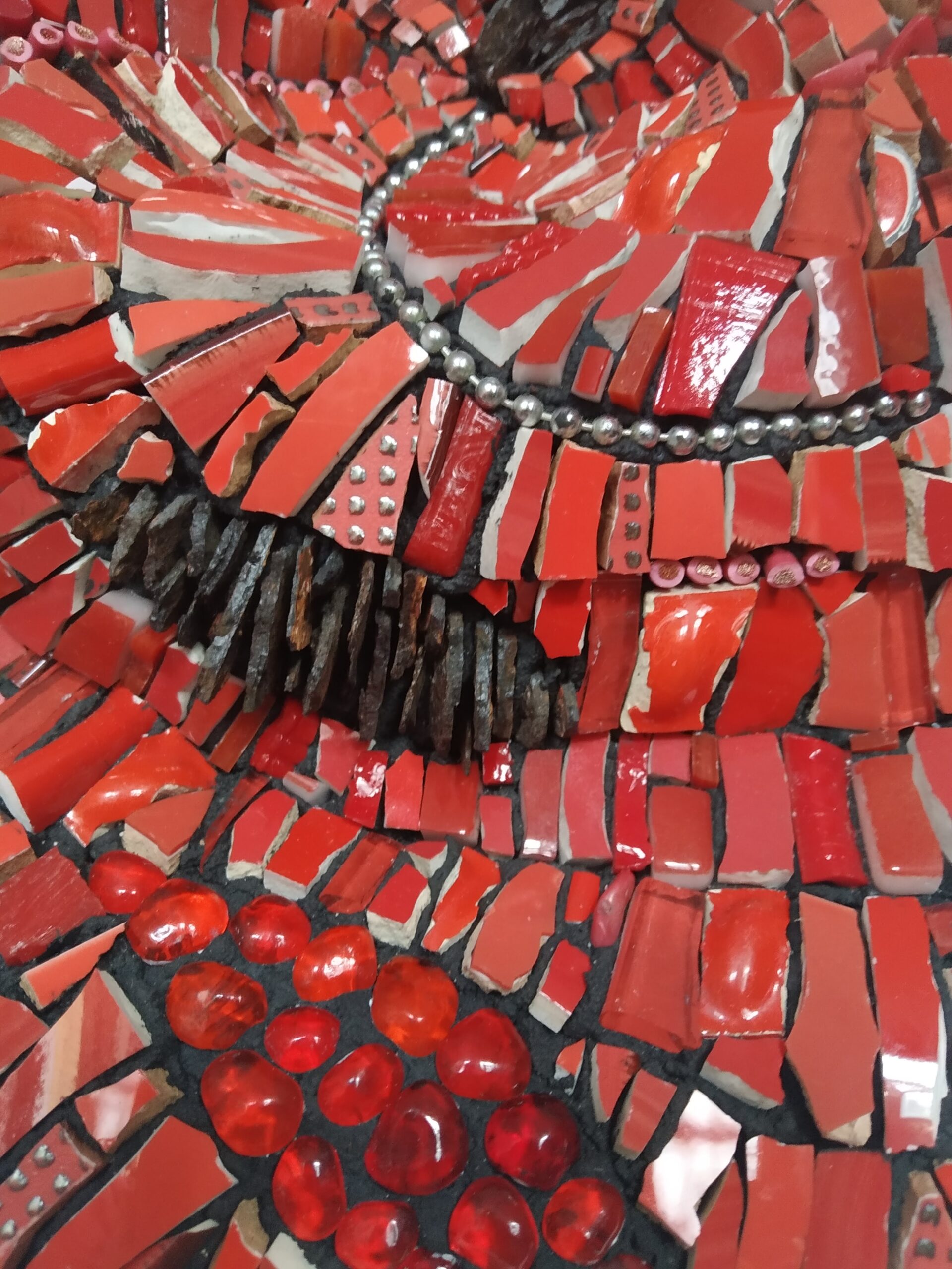 Azulejos, cerámicas de piso, vajilla, pasta vítrea, venecitas, mini gemas, corales, cables, milifiori, cadena bolita, hierro oxidado de naufragio.