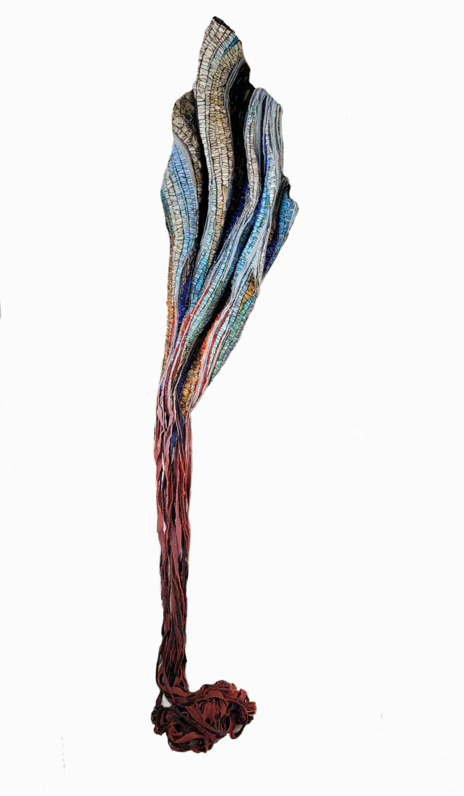 Smalti, venecitas, porcelana, vajilla, cerámicos reutilizados, cable, azulejos, piedras y elementos naturales de la costa del Lago Argentino