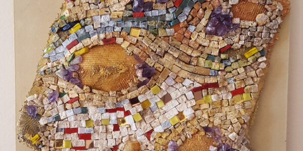 EL BAILE MARISA ALLI Venecitas, azulejos, teselas artesanales, corcho, papeles metálicos y granos de café. 30 x 30 cm · 2022 aíces, esencia. Un modo de conectar con lo profundo, más allá de la conciencia. En el caos de…
