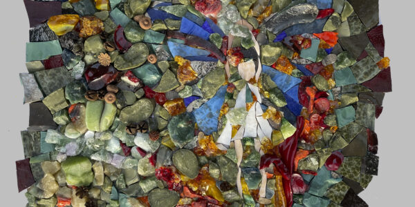 DONDE QUIERAS ESTAR PATRICIA M. DI BENEDETTO Piedras naturales, mármol travertino, smalti, filati, pastina, bijouterie. 48 x 38 cm · 2022 veces no sabemos si sumergirnos en la quietud o dejarnos llevar por el movimiento…ambos producen cambios. Por más…