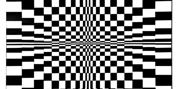 PORTAL ALEJANDRA CORTESE Azulejo sobre madera. 65 x 65 cm · 2022 iferentes planos que proponen otra forma de espacialidad. Trama op realizada en Adobe Photoshopque nos invita a recorrer otras dimensiones espacio-temporales.