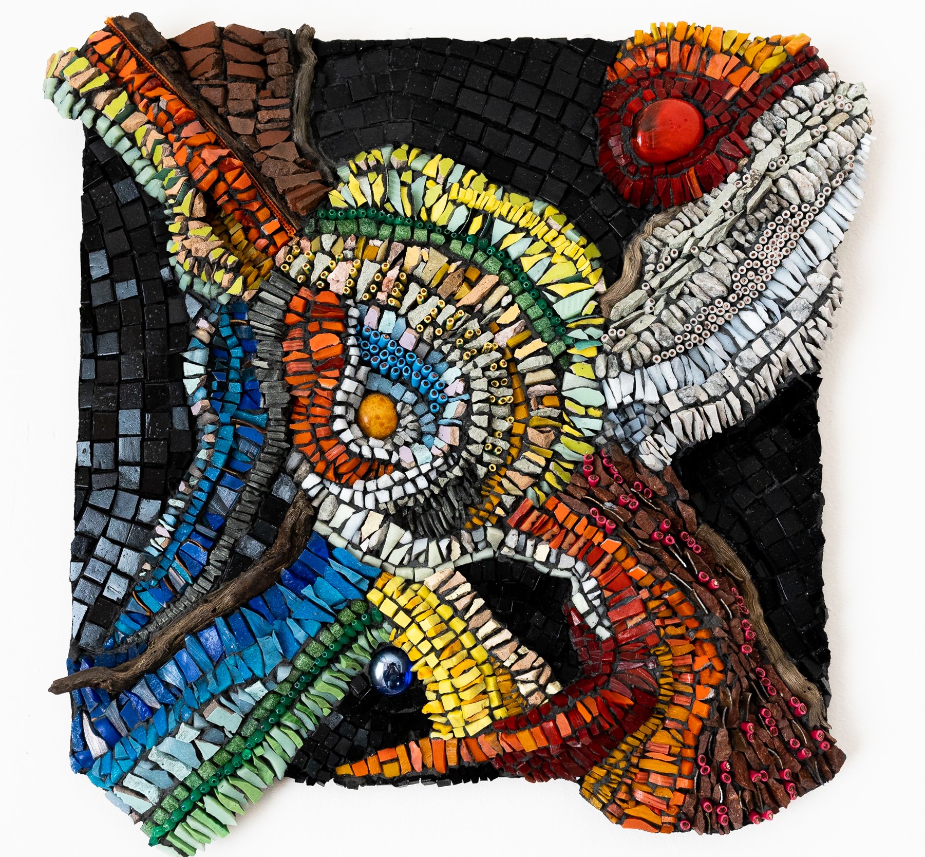 Vencitas, azulejos, cables, chapa, smaltis, gemas, piedras, madera.